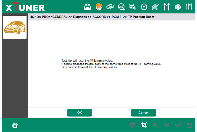 Exécutez le logiciel de diagnostic Xtuner E3, et commencer à rétablir la position TP